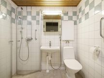 - Kylpyhuoneessa suihkuseinä, peilikaappi, pesukoneliitäntä, kiinteät valaisimet.