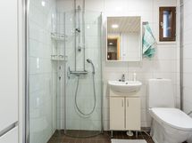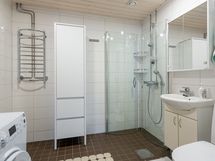 - Suihku, Pesukoneliitäntä, Mukavuuslattialämmitys, Tilaa pesukoneelle, Käsisuihku, Kaapisto, Allas, Suihkuseinä, WC-istuin, Peilikaappi