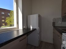 - Keittiön varusteet: Jääkaappi ja liesi. Työtason materiaali: Laminaatti. Keittokomero.