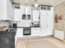 - Keittiön varusteet: Jääkaappipakastin, erillisuuni, liesituuletin ja astianpesukone. Liesi: Induktioliesi. Työtason materiaali: Laminaatti. Lattia siperian lehtikuusta.