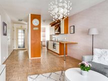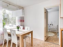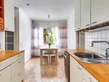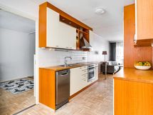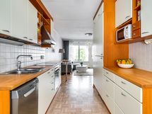 - Kalusteisiin integr. täyskorkea jääkaappi 2-os., pakastin 80L, keraaminen liesi, kiertoilmauuni, astianpesukone, liesituuletin hormiin, iv-ohj., kaapistot, tasot, kiinteät valaisimet