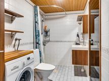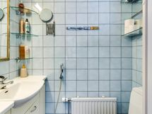 - Kylpyhuone: Suihku, peilikaappi, kylpyhuonekaapisto, wc-istuin, pesukoneliitäntä, "oskarinoksa". Wc: Peili, kylpyhuonekaapisto, wc-istuin, bidé. Sauna: Lauteet, pilarikiuas (sähkö)