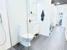 - Pesutilojen kuvaus: Kokonaan laatoitettu. Suihku, wc-istuin, peilikaappi, allas- ja allaslaatikosto, bidesuihku. Lattialämmitys. Erillisten WC:n lukumäärä: 1. Erillisen WC:n kuvaus: Erillinen tyylikäs wc, jossa varusteina wc-istuin, bidesuihku, peilikaappi, allas- ja allaslaatikosto, korkea kaappi. Lattia laattaa ja seinät kaakeli/ maali. Lattialämmitys.