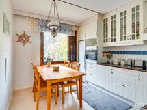 - Keittiön varusteet: Jääkaappipakastin, liesituuletin ja erillisuuni. Liesi: Induktioliesi. Työtason materiaali: Laminaatti.