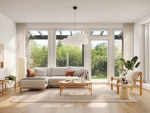 • Tästä kodista valoisan tekevät suuret ikkunat kahteen ilmansuuntaan ja tavallista korkeampi n. 2,95 metrin huonekorkeus