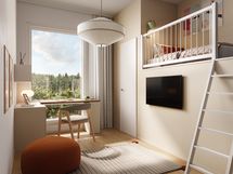 • Toisessa makuuhuoneessa kätevä, tilaa säästävä nukkumaparvi