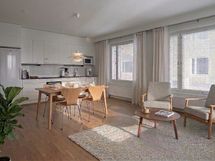Toimiva 69,5 neliön koti on suunniteltu tehokkaaksi ja toimivaksi. Asunnossa on hyvin säilytystilaa ja sauna.