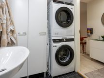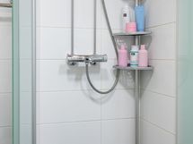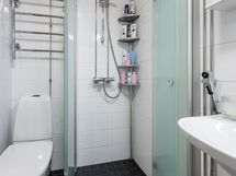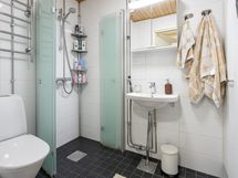 - Suihku, Pesukoneliitäntä, Mukavuuslattialämmitys, Tilaa pesukoneelle, Käsisuihku, Kaapisto, Allas, Suihkuseinä, WC-istuin, Peilikaappi