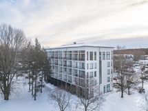 Kodikas ja valoisa kaksio talon päätykulmassa.
