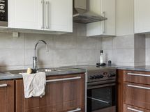 - Liesi: keraaminen, sähköliesi. Työtasot: laminaatti. Kylmäsäilytys: jääkaappi/pakastin. Varustus: mikroaaltouuni, astianpesukone, liesituuletin / suodatin. Keittiöremontti 11/2011