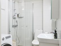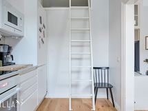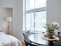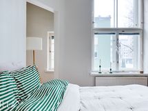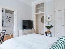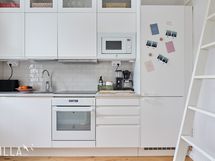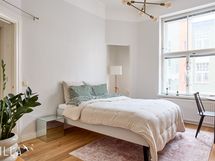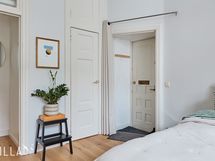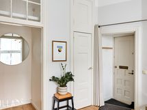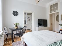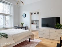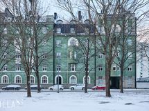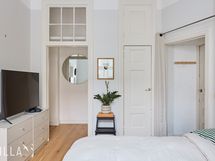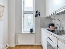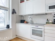 Huoneistossa aikakauden vahvuudet ovat edelleen läsnä. Korkea huonekorkeus, suuret ikkunaruudut ja runsas luonnonvalo luovat avaran ja ilmavan tunnelman, joka tuntuu neliöitään suuremmalta. Syvät ikkunalaudat ja selkeä pohjaratkaisu korostavat rakennuksen alkuperäistä kaupunkiluonnetta. Keittiö on ajattoman vaalea ja toimiva, ja pesuhuone on uusittu taloyhtiön LVI-peruskorjauksen yhteydessä, mikä tuo asumiseen huolettomuutta ja nykyaikaisuutta osaksi historiallista kehystä.