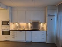 - Paljon kaappitilaa, Laminaattitasot, Astianpesukone, Keraaminen liesi, Liesi tai uuni erikseen, Jää-pakastinkaappi