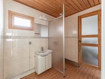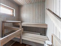 Varusteet: Sähkökiuas. Seinämateriaali: Paneeliseinä. Lattiamateriaali: Laattalattia