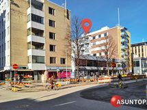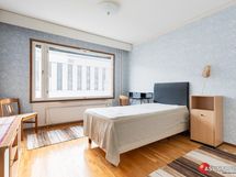 - Kaupunkinäkymät. OIohuone, parveke ja keittiö; näkymä länteen, jossa vastapäinen talo ja viistosti hiukan Puutarhakadulle. Makuuhuone itään; näkymänä ent Anttilan tavaratalon seinä.