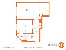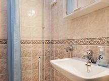 - Kylpyhuone, suihku, peilikaappi, pesukoneliitäntä, lattialämmitys, kiinteät valaisimet.