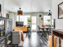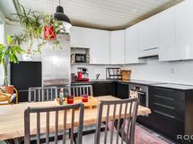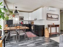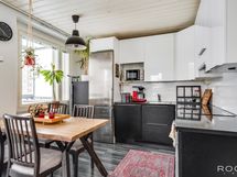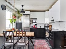 Varustus: Induktioliesi, liesituuletin, erillisuuni, kaapisto, allas, astianpesukone, jääkaappipakastin.