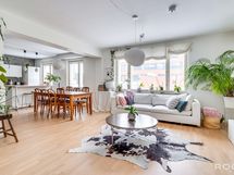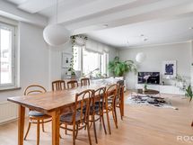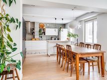 Remontin yhteydessä poistettu keittiön ja olohuoneen seinä.