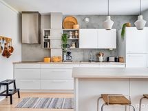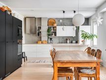 Varustus: Integroitu jääkaappi (korkea) ja pakastin (korkea), erillisuuni, induktioliesi, liesituuletin (2019), mikro (2019), integroitu astianpesukone (2020).
