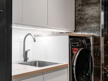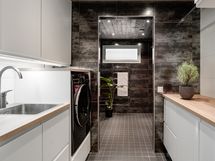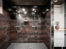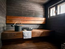 - Kuvaus: Seinät: mustaksi käsitelty STS saunapaneeli