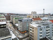 - Läpitalon huoneisto, mistä näkymät Näsilinnankadulle ja taloyhtiön sisäpihalle.