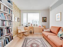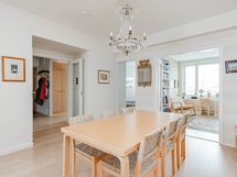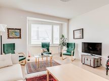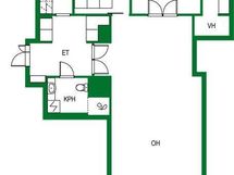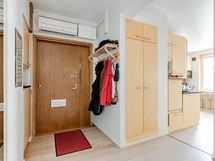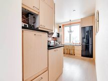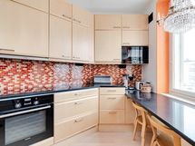 - Jääkaappi/pakastin, koivukaapistot, musta Ylämaan graniittikivitaso, Blanco komposiitti allas, keraaminen liesi, liesituuletin/ aktiivihiilisuodatin, pesukoneliitäntä, kiinteät valaisimet. A la Carte keittiö, kodinkoneet Siemensin. Lattia: Vaalea Karelia-parketti. Seinät: Maalattu, välitila lasimosaiikkilaatta