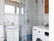 - Varusteet: WC, suihku, suihkuseinä, pesukoneliitäntä, allaskaappi, peilikaappi, kiinteät valaisimet