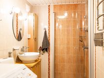 - Pesutilojen varusteet: WC-istuin, suihku, pesukoneliitäntä, lattialämmitys, bidee-suihku, allaskaappi ja peili. Pesutilojen kuvaus: Saumat uusittu 2024, Kattomaalattu 2024, kylpyhuoneremontti 2010,.