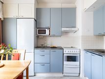 - Keittiön varusteet: Jääkaappipakastin (2024), liesi ja liesituuletin (2024). Liesi: Keraaminen liesi. Työtason materiaali: Laminaatti. Keittiö kaapistot ja viinyylilankku uusittu 2024, seinät mallaattu 2023.