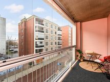- Lasitettu parveke on iso ja sieltä on näkymät Salhojankadulle.