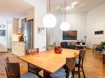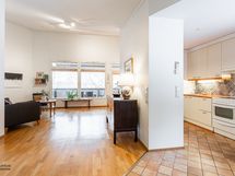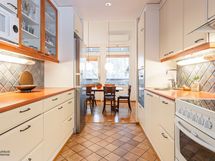 - Erittäin toimiva keittiö, joka on yhteydessä niin olohuoneeseen kuin ruokailutilaan.