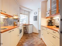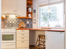 Varustus: keraaminen liesi, astianpesukone, jääkaappi, liesituuletin huippuimurilla ja kiinteät valaisimet.
