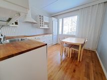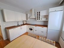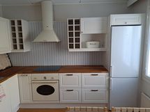 - Keittiön varusteet: Erillisuuni, liesi, liesituuletin, astianpesukone (Integroitu) ja jääkaappipakastin. Liesi: Induktioliesi. Työtason materiaali: Puu.