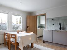 - Työtasot: laminaatti. Keittiö saneerattu vuonna 2025 (Puustelli).