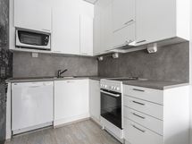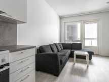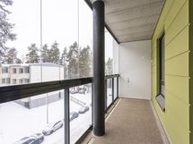 Asunnon pohjaratkaisu on neliöitään suuremman tuntuinen. Olohuone ja avokeittiö muodostavat yhtenäisen, viihtyisän tilan, josta on käynti huoneiston levyiselle lasitetulle parvekkeelle. Parveke toimii keväästä pitkälle syksyyn lisähuoneena – täydellinen paikka aamukahville, etätyöpisteelle tai rentoutumiseen.