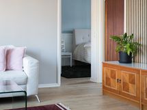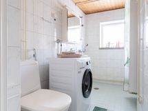 - Varustus: pesukoneliitäntä, wc-istuin, suihku, peilikaappi, kiinteät valaisimet, kylpyhuonekaapisto.