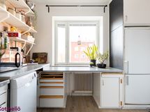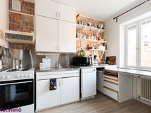 - Liesi: sähköliesi. Työtasot: laminaatti. Kylmäsäilytys: jääkaappi/pakastin. Varustus: astianpesukone, kiinteät valaisimet, liesituuletin / suodatin. Keittiössä on alkuperäiset kaapistot.