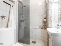 - Pesutilojen varusteet: WC-istuin, suihku, pesukoneliitäntä, lattialämmitys, pesuallas, suihkuseinä, bidee-suihku ja allaskaappi. Pesutilojen kuvaus: Tila remontoitu 2022.