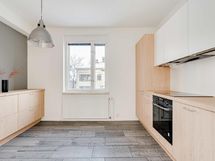- Kaapistot, integroitu jääkaappipakastin, astianpesukone, liesituuletin.