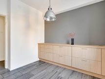 - Kaapistot, integroitu jääkaappipakastin, astianpesukone, liesituuletin. Lattia: Laatta. Seinät: Maalattu, välitila kalustelevyä
