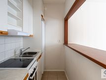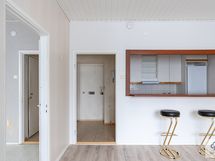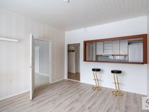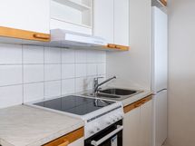Keittiön varusteet: Jääkaappipakastin, liesi ja liesituuletin. Liesi: Sähköhella. Työtason materiaali: Laminaatti.