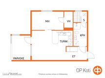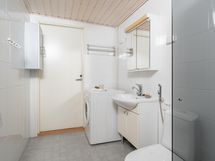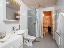 - Saunassa on sähkökiuas. Kylpyhuoneessa on suihku, suihkuseinä, peilikaappi, allaskaappi sekä pesukoneliitäntä.