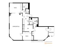 - Pinta-alan peruste: Yhtiöjärjestyksen mukainen ja isännöitsijäntodistuksen mukainen. Ei tarkistusmitattu. Pinta-alat saattavat tämän ikäisissä kohteissa (yhtiö rekisteröity ennen 01.01.1992) poiketa olennaisestikin asuinrakennusten nykyisten mittaustapojen ja standardien (SFS 5139) mukaan laskettavasta asuintilojen pinta-alasta. Pinta-ala voi siis olla edellä mainittua pienempi tai suurempi.