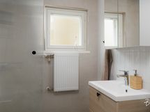 - Varustus: suihkuseinä, wc-istuin, suihku, peilikaappi, kylpyhuonekaapisto.
