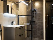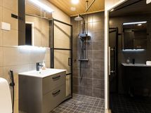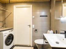 - Pesutilojen varusteet: WC-istuin, bidee-suihku, pesukoneliitäntä, suihkuseinä (kääntyvä), suihku (sadesuihku), lattialämmitys, allaskaappi, pesuallas, peilikaappi (valolla) ja pyykkikaappi, kattokuivaustanko. Pesutilojen kuvaus: Svedbergs-kalusteet. Paneelikatto. Erillisen WC:n varusteet: Bidee-suihku, wc-istuin, lattiakaivo, allaskaappi, pesuallas, peilikaappi (valolla), korkea kaappi ja lattialämmitys. Erillisen WC:n kuvaus: Topi-keittiön kalusteet. Paneelikatto.