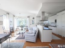 - Liesi: keraaminen, erillisuuni. Työtasot: kivi. Kylmäsäilytys: jääkaappi, pakastin. Varustus: liesituuletin, mikroaaltouuni, astianpesukone.