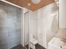 - Varustus: suihkuseinä, lattialämmitys, wc-istuin, suihku, peilikaappi, kiinteät valaisimet, kylpyhuonekaapisto. Varustus: lattialämmitys, bidee-suihku.