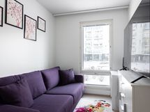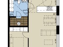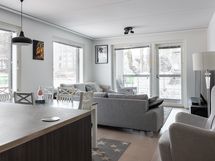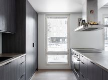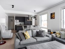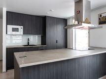 - Liesi: induktio, erillisuuni. Työtasot: laminaatti. Kylmäsäilytys: jääkaappi, pakastin. Varustus: mikroaaltouuni, astianpesukone, kiinteät valaisimet, liesituuletin / hormi. Vaalea parketti