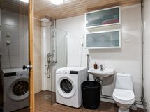 - Pesutilojen kuvaus: Varustus: wc-istuin, allas, pesukoneliitäntä, suihku, lattialämmitys, tila laatoitettu kauttaaltaan. Erillisten WC:n lukumäärä: 1. Erillisen WC:n kuvaus: Todella tilava wc! varustus: peilikaappi, allaskaappi, wc-istuin, tila laatoitettu kauttaaltaan.