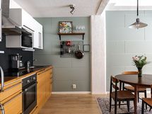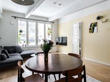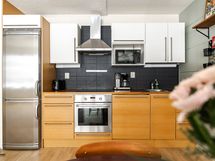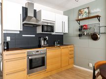 - Varustus: jääkaappi/pakastin, keraaminen liesi, uuni, liesituuletin, astianpesukone, parkettilattia.