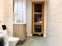 - Suihku, Pesukonevalmius, Peilikaappi, Allaskaappi